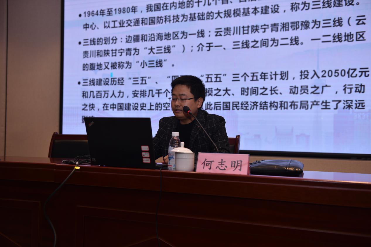 讲座中,何老师从三线建设启动的历史背景、形成与完善、布局与体系以及不同时期三线建设的主要项目等方面为大家全面的介绍和分析了三线建设的历史意义、三线精神的现实价值,更主要的是之于“大三线”的成渝地区在今天双城建设下的历史经验与启示。何老师总结到,当前的建设取得伟大成就的根本就是党的领导和社会主义道路,现在的我们比历史上任何时期都更加接近、更有信心、更有能力实现中华民族伟大复兴的中国梦。我们要更紧密地团结在以习近平同志为核心的党中央周围,勠力同心,奋斗不息,继续开创中国特色社会主义事业新局面,为实现中华民族的伟大复兴砥砺前行!