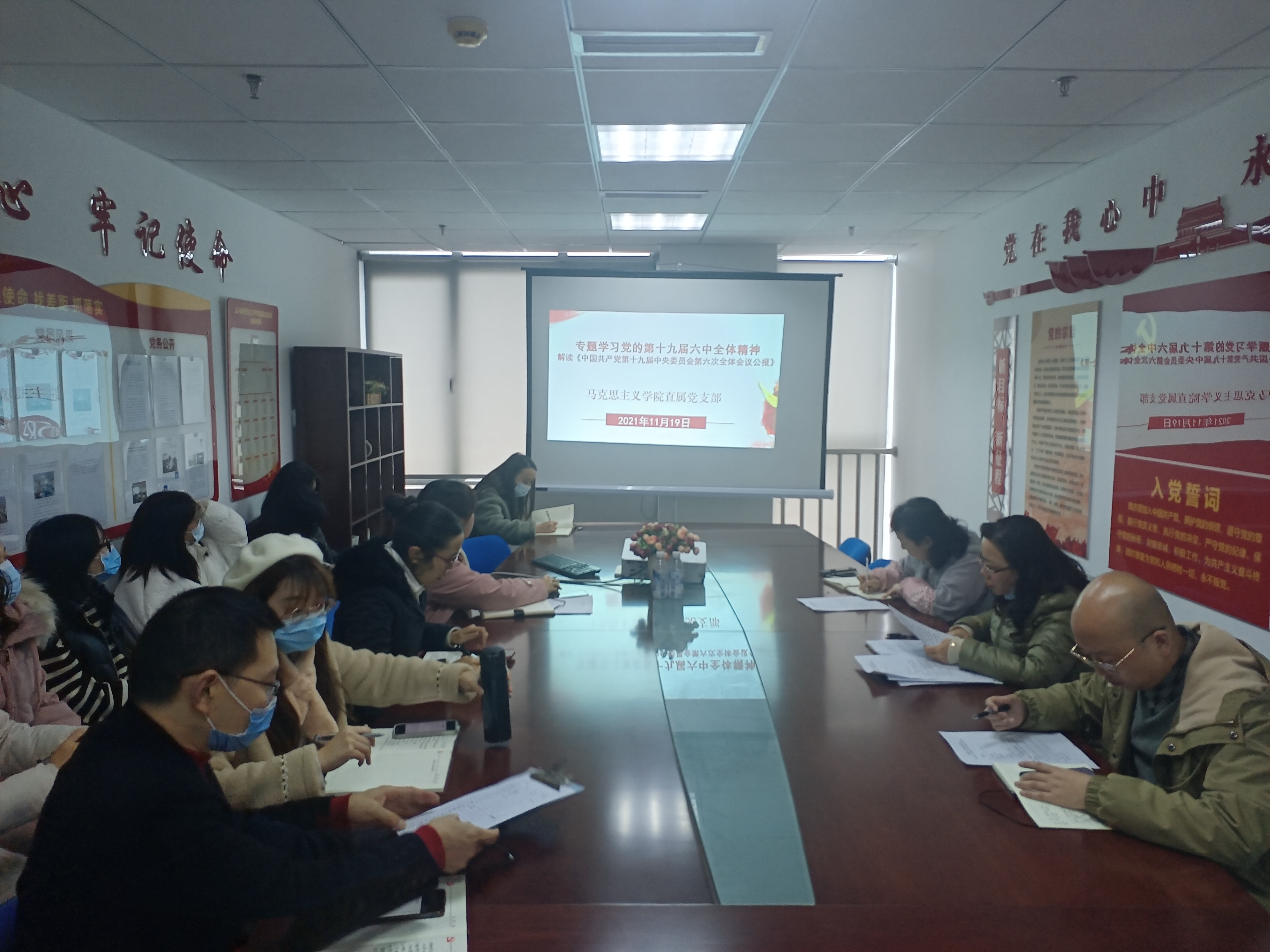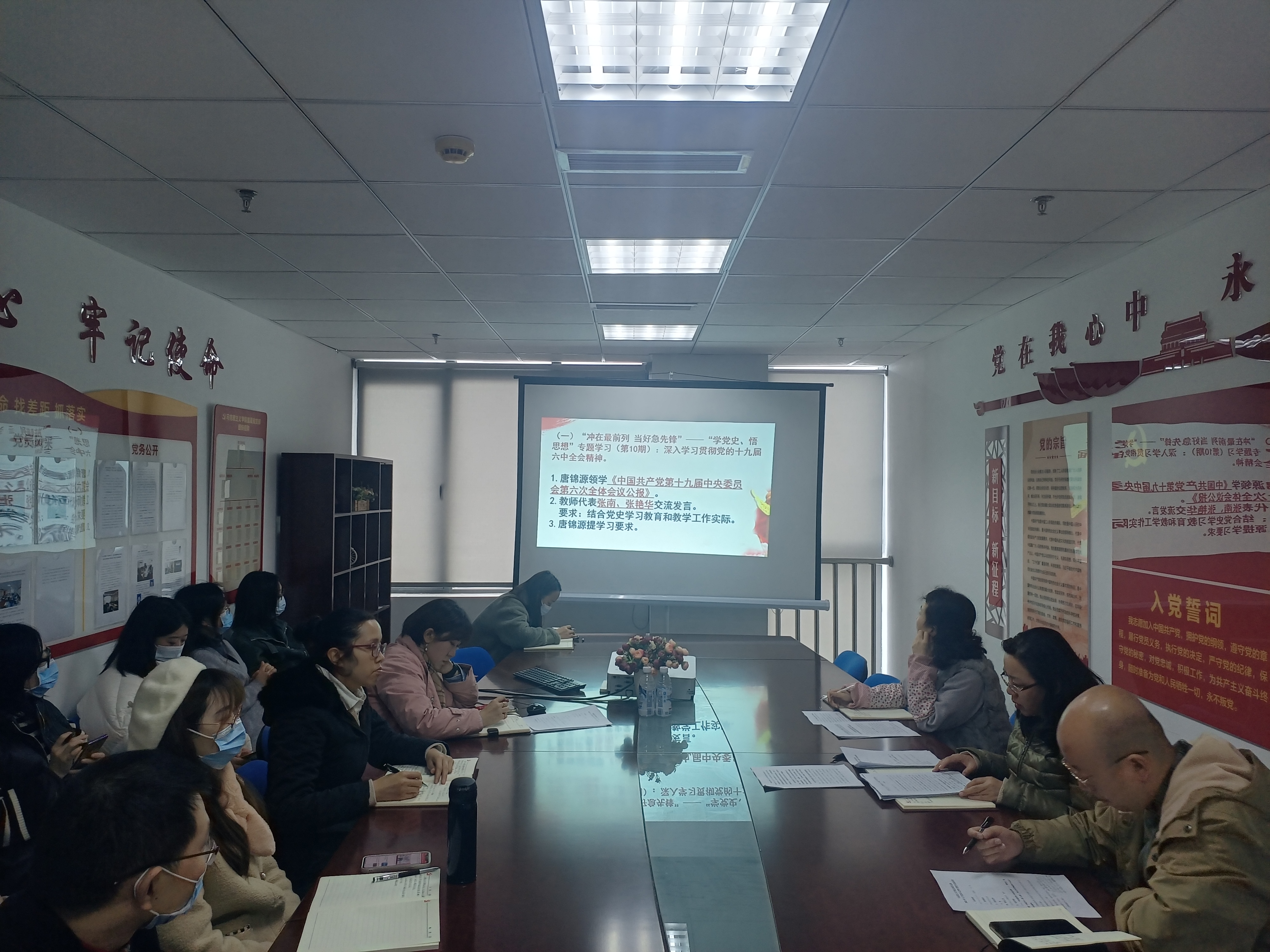 会议组织全体党员、教师开展了11月“学党史、悟思想”专题学习(第10期)——“冲在最前列 当好急先锋”主题活动,副经理唐锦源深入解读了党的十九届六中全会重要内容,经理协助刘静组织疫情防控学先进活动。