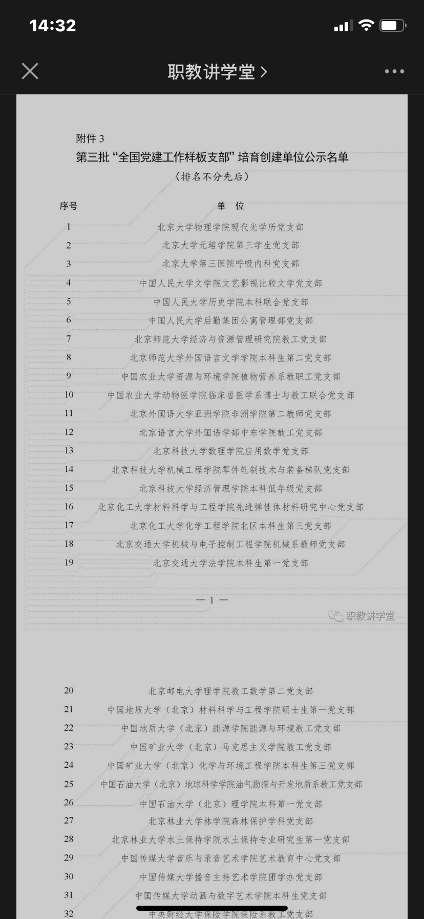 图1:“全国党建工作样板支部”培育创建单位公示名单